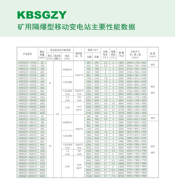 礦用隔爆型移動變電站KBSGZY由礦用隔爆型移動變電站用干式變壓器、礦用隔爆型移動變電站用高壓真空開關和礦用隔爆型移動變電站用低壓保護箱三個部分組合而成。開關具有漏電、過載、短路、斷相、失壓、等保護功能。
